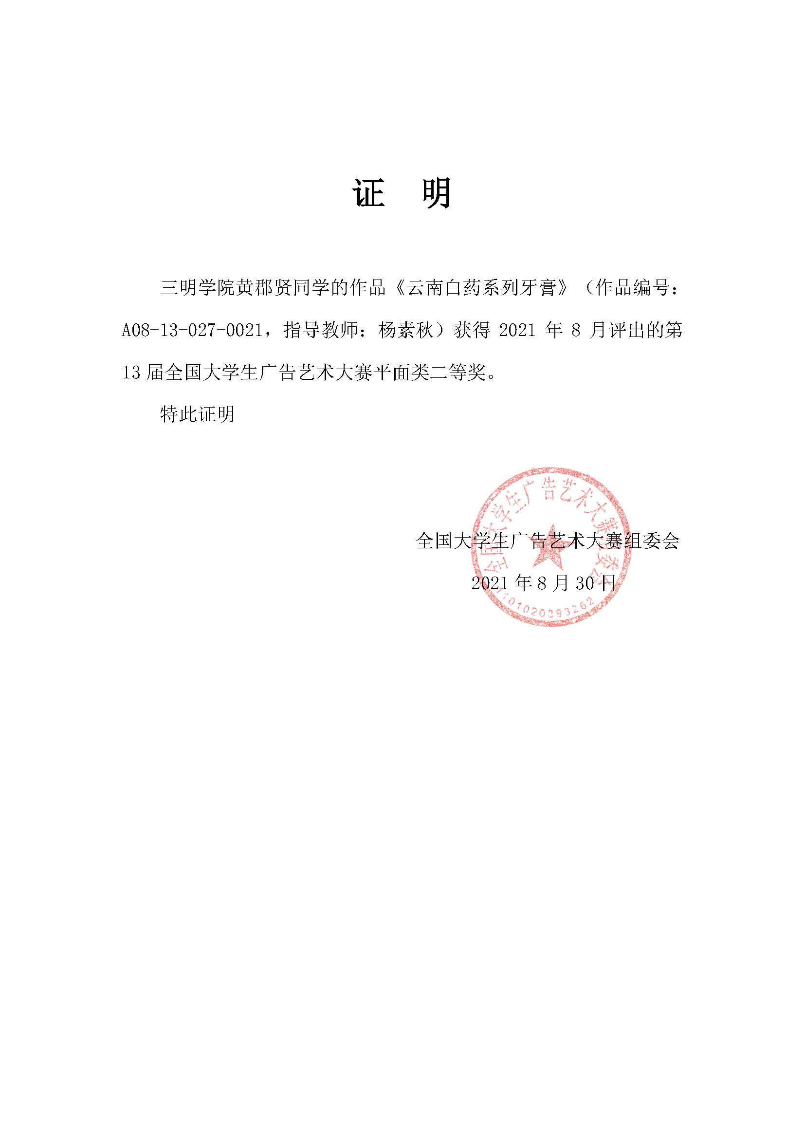 近日,2021第13届全国大学生广告艺术大赛获奖名单公布,本次大赛的主题为“创意我发现”,参赛作品分为九大类,海理学子共获国家级二等奖1项,省级一等奖1项,省级优秀奖16项。其中,2018级视觉传达设计专业的黄郡贤同学创作的《云南白药系列牙膏》荣获平面类全国二等奖,2018级视觉传达设计专业的陈海霞同学创作的《马上买!》爱马仕箱包文案荣获省级一等奖。