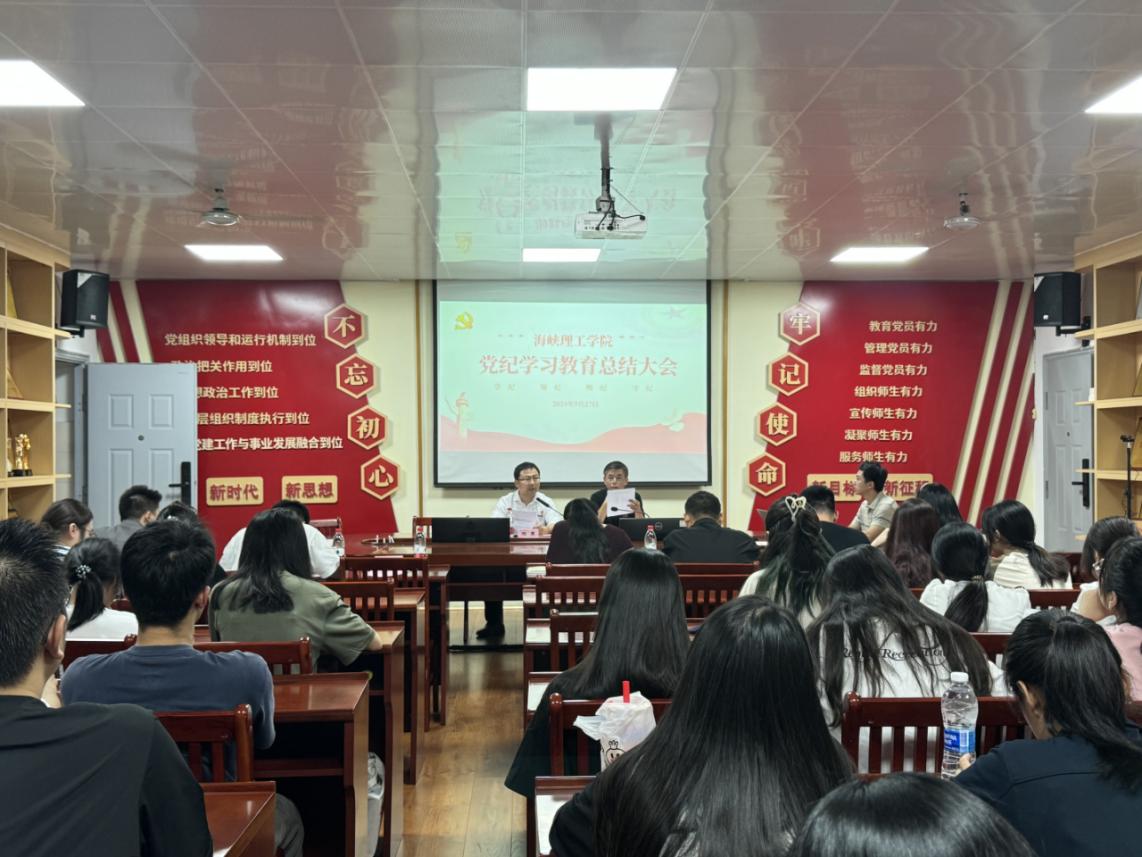 会议指出,自党纪学习教育开展以来,海峡理工学院深入学习贯彻习近平总书记关于党纪学习教育的重要讲话和重要指示精神,认真落实校党委对党纪学习教育工作的部署要求,结合学院实际制定党纪学习教育计划,通过邀请专家学者宣讲解读、组织各党支部理论研讨、各党支部书记轮流上纪律党课、观看警示教育纪录片等多种形式开展党纪学习,充分调动党员学习的积极性,营造浓厚的学习氛围,切实推进党纪学习走深走实、见行见效。