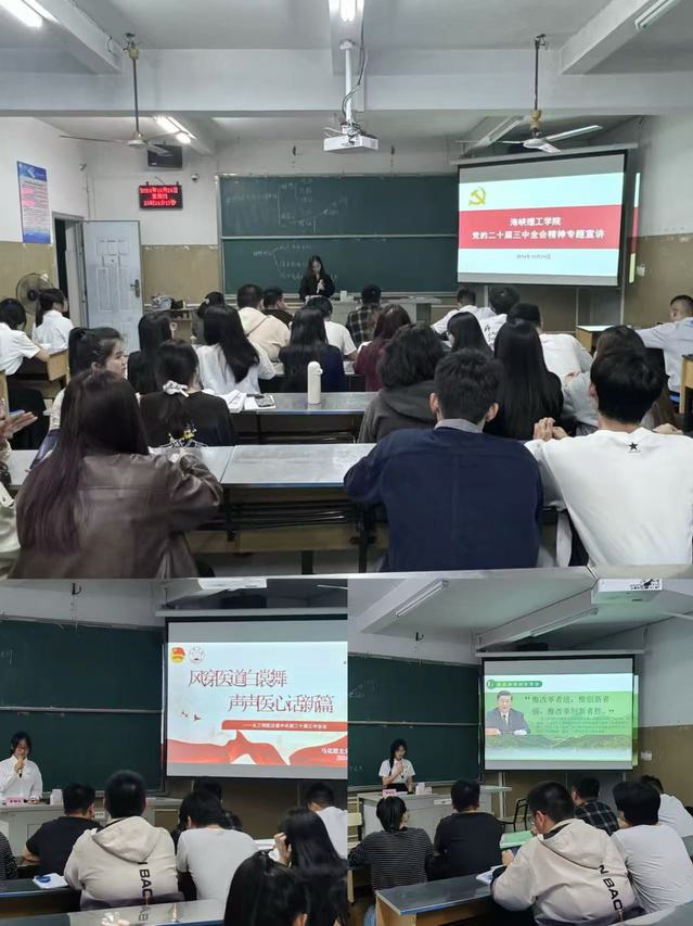 10月24日,海峡理工学院在致用楼407开展“一站式”学生社区党的二十届三中全会精神宣讲。教师代表、学生社区党员、入党积极分子及宿舍长代表参加活动。