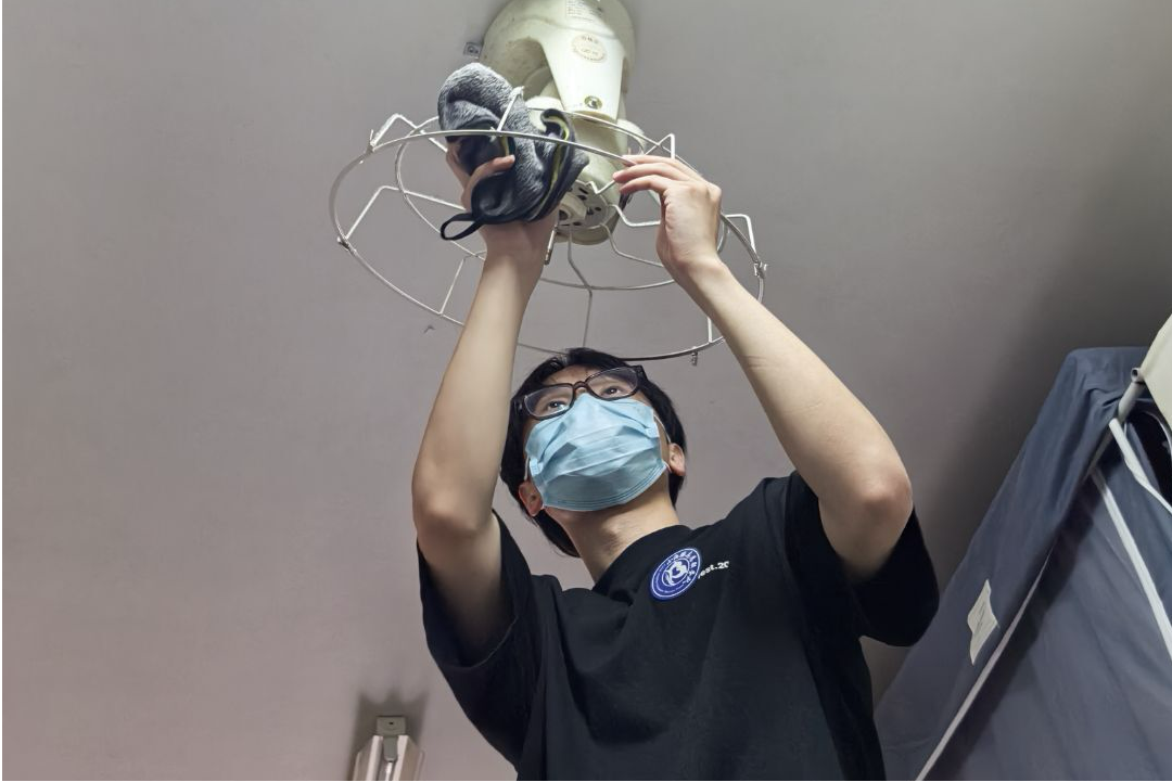 活动采用“线上预约+线下服务”模式,通过公众号推文、海报及宿舍宣传广泛动员。志愿者们携带专业工具深入学生宿舍,遵循“不忽视任何细节,不放过任何死角”的原则,规范攀梯拆卸滤网、擦拭扇叶、调试设备。两日内,累计完成431台空调、风扇清洁任务,宿舍楼内清风徐来,学子们纷纷点赞:“清洗后的风扇风力更足,宿舍环境焕然一新!”