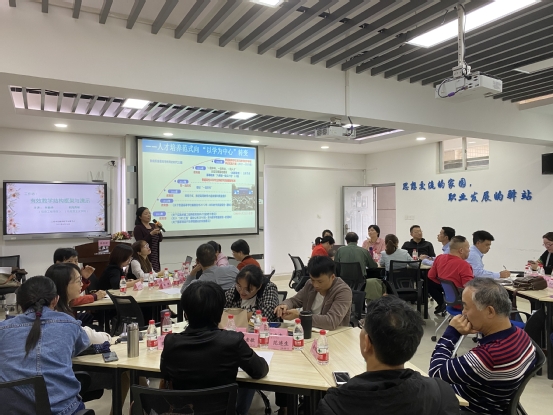 分组围桌,在“学”中“做”,在“做”中“收为己用”。4月14日下午的博学楼421教室中,一堂高效的教学能力提升课正在进行。以工作坊互动学习的方式,信息工程学院的林丽华副教授和马克思主义学院的欧阳秀敏博士为全校专兼职思政课教师带来了一场“有效教学结构框架与演示”的学习交流。