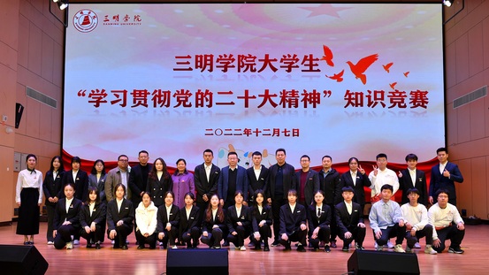 总决赛围绕党的二十大报告、《中国共产党章程(修正案)》、新时代十年伟大成就等内容,对选手学习党的二十大精神进行全面测试。选手们通过“个人必答”、“一站到底”和“现场互动”三个环节不断淘汰,现场气氛热烈而紧张。比赛过程中穿插了男生合唱《追寻》和朗诵《沿着习近平总书记三明足迹看新时代》等节目,将现场观众问答题目融合到了节目之中,形成了台上台下一体互动的氛围,观众反响十分热烈。经过近两个小时的激烈角逐,来自马克思主义学院的陈锦煌获得个人一等奖,来自文化传播学院的江毅伟与来自马克思主义理论读书社的李嘉筠分获个人二等奖,来自马克思主义学院的郑日凯、王家炜和马克思主义理论读书社的张晨星分获个人三等奖。马克思主义学院、教育与音乐学院和资源与化工学院代表队分获团体一、二、三等奖,马克思主义学院、经济与管理学院和教育与音乐学院获得优秀组织奖。通过此次竞赛,进一步检验了大家对党的二十大报告的学习程度,调动了大家学习的积极性,达到了“以赛促学,以学促行”的效果。