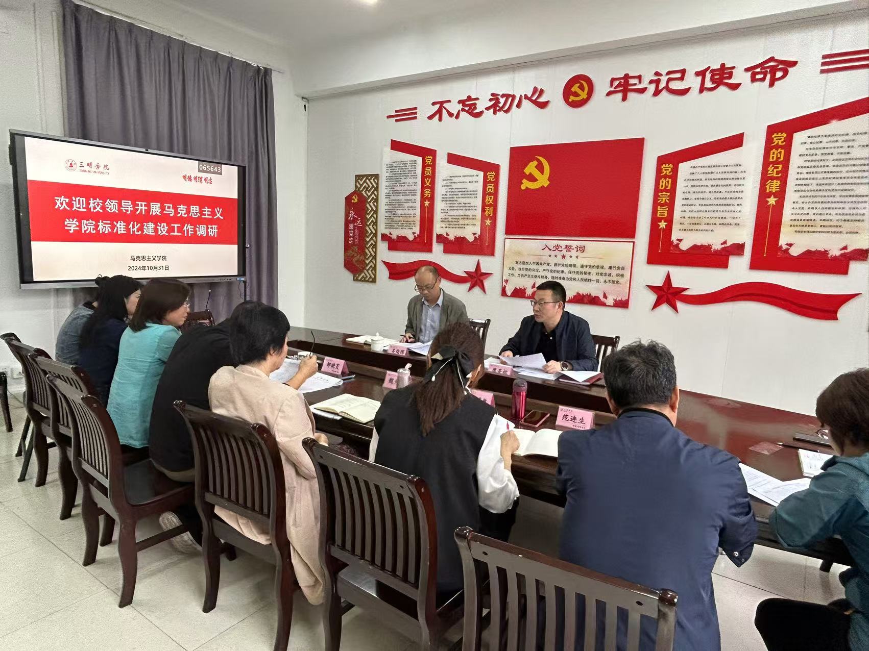 为深入贯彻落实教育部《普通高等学校马克思主义学院建设标准(2023年版)》文件精神,推进马克思主义学院科学化、规范化建设,10月31日下午,校党委副书记廖景榕到马克思主义学院调研。马克思主义学院领导班子成员、科室负责人参加,宣传部相关负责人员陪同调研。