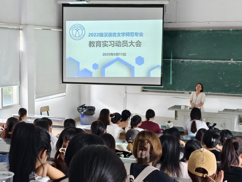 6月11日下午,文化传播学院在鸿文楼(一)201室召开2022级汉语言文学师范专业实习生的教育实习动员大会。