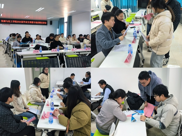 以开展“大学生就业引航计划”为契机,分层分类开展就业创业指导,提高服务的精准度、实效性,扎实做好重点群体帮扶,助力我院学子实现更充分、更高质量就业。寒假期间,我院也将线上线下相结合,持续在资源与化工学院官网就业专栏以及2024届毕业生就业信息发布更新丰富的招聘信息,在推介优质就业岗位、学生求职咨询指导、求职技能培训等方面持续发力创新,线下深入推进访企拓岗促专项行动,对接企业用人需求,拓宽毕业生就业渠道,助力2024届毕业生青云“职”上。
