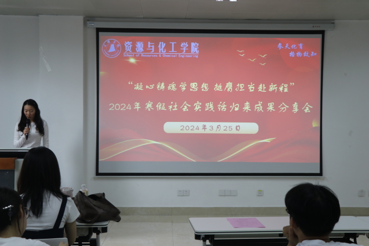 为进一步学习贯彻习近平新时代中国特色社会主义思想,锤炼同学们意志品格及社会化能力,3月27日,资源与化工学院于在工科楼A403开展寒假社会实践成果分享会。院团委副书记出席本次会议,学生会主席团及2021级、2022级、2023级学生班级代表共同参与。