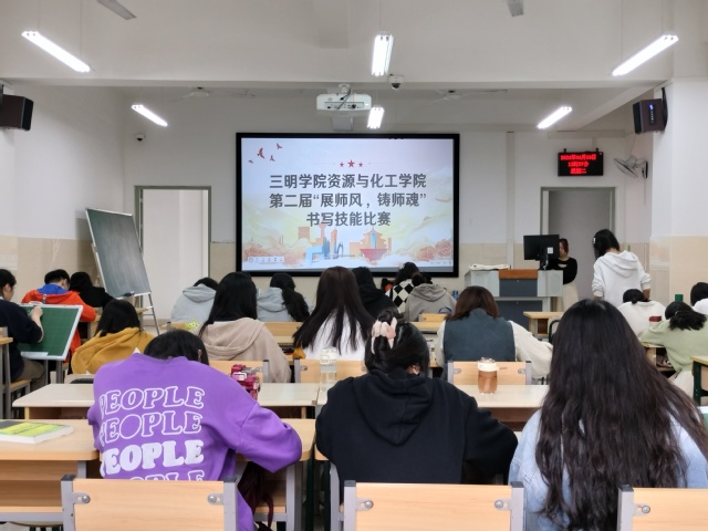 为深入贯彻习近平总书记关于教育工作的重要指示和批示精神,提升师范专业人才培养质量,培养四有好老师,展现师范生独特风采,4月9日,资源与化工学院在工科楼B301-302教室开展第三届展师风,铸师魂书写技能比赛。