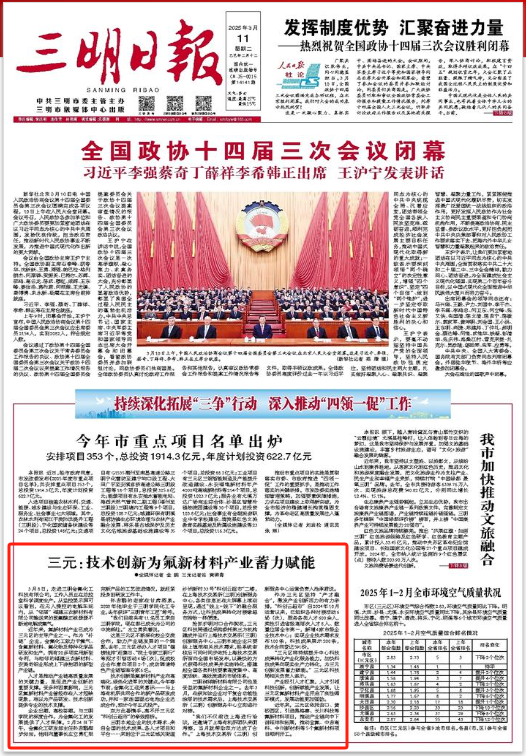 产业吸引人才汇聚,人才引领科技创新,创新赋能产业发展,让三元区氟新材料产业开启了良性循环模式,发展动能更加强劲。