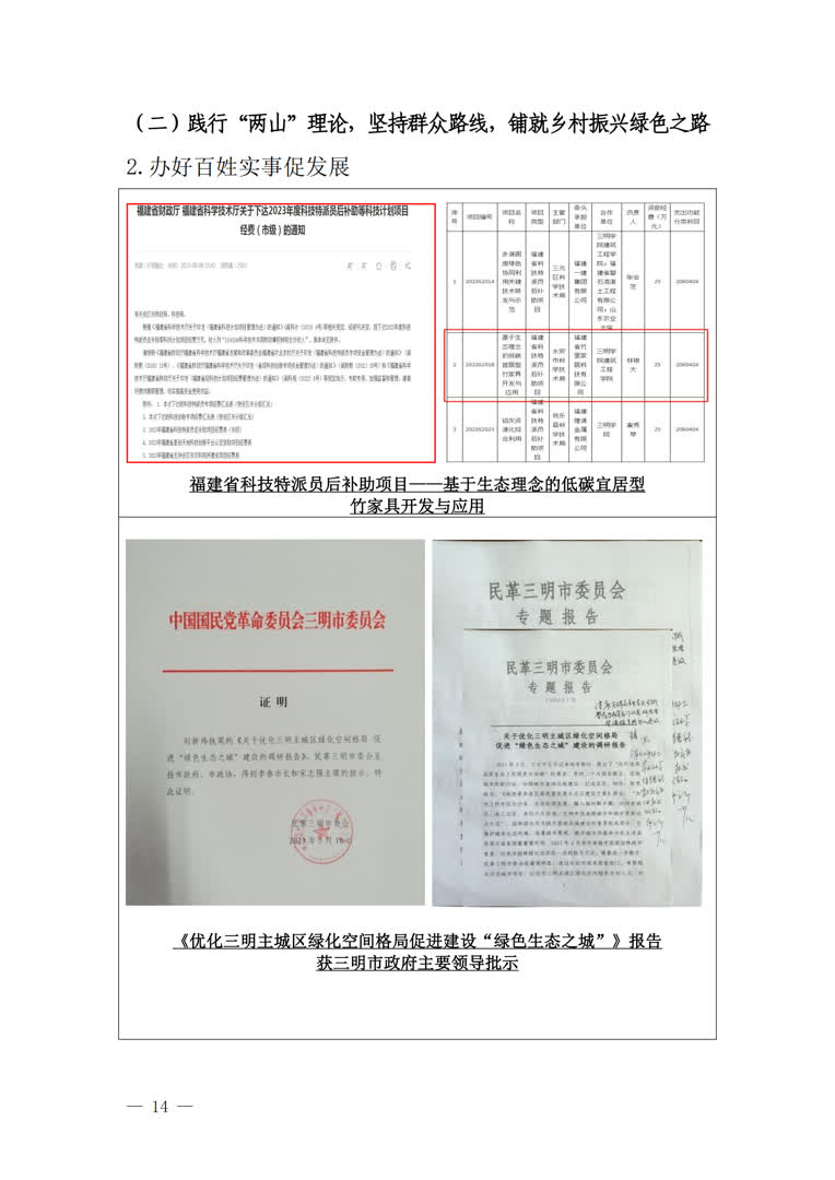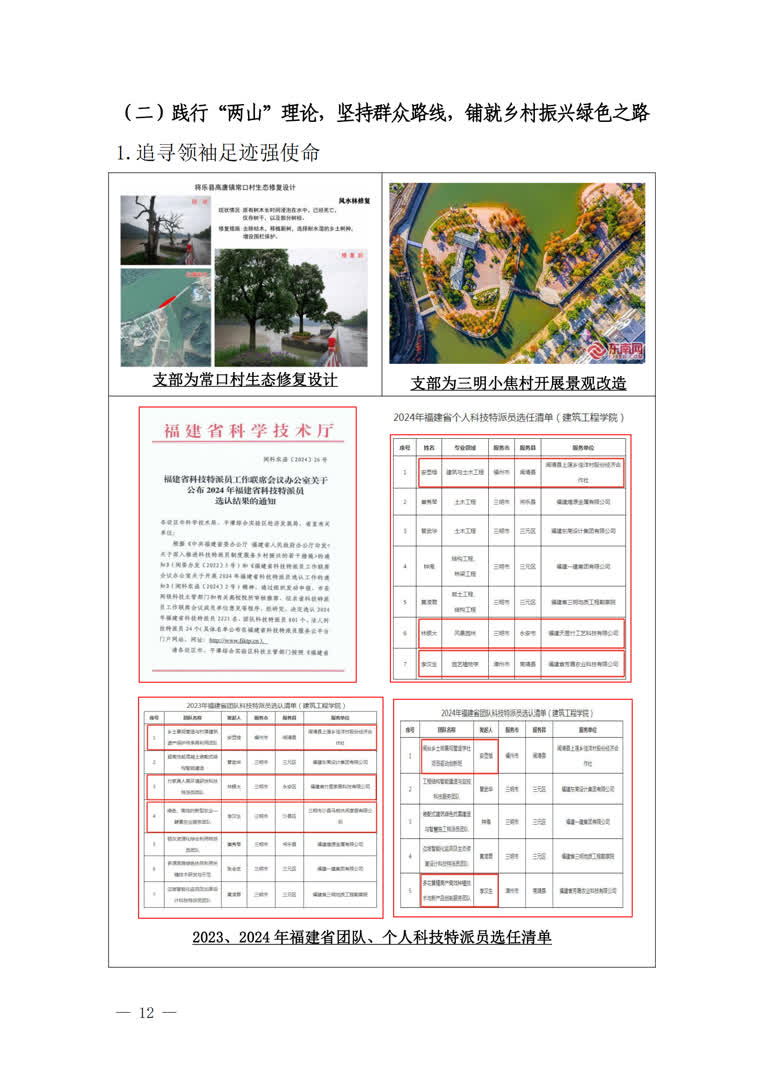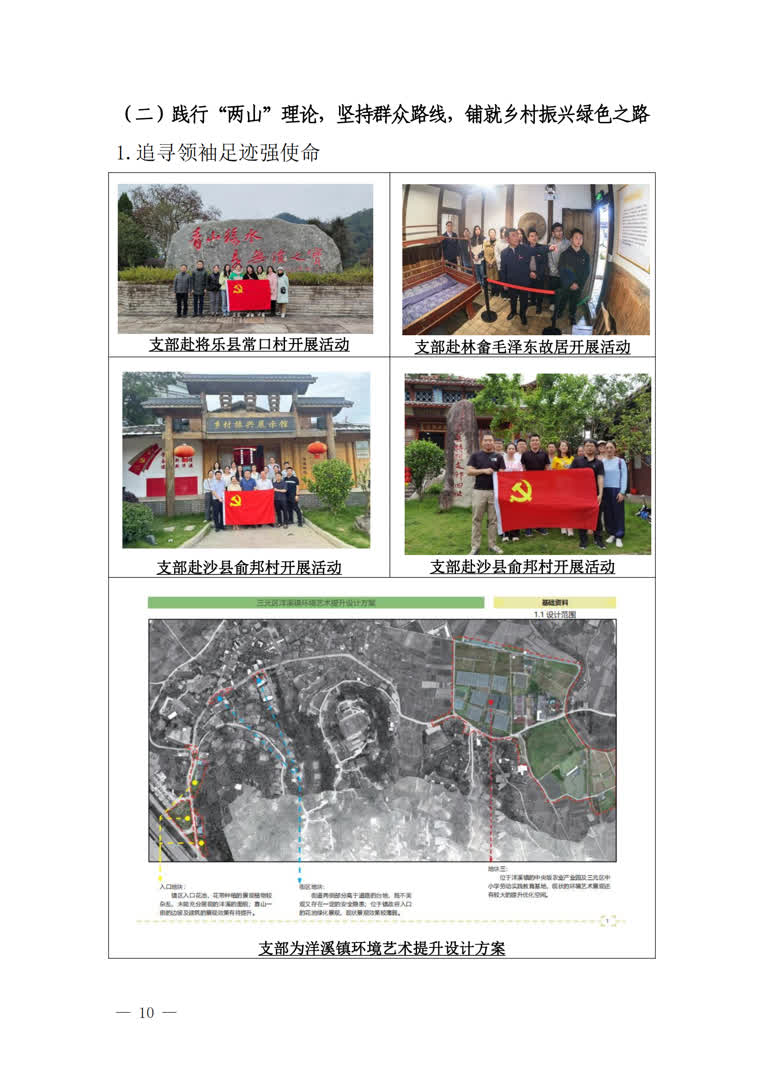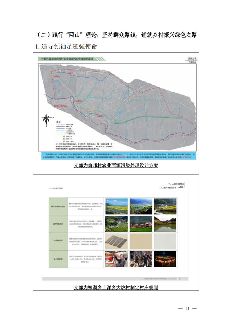 2.办好百姓实事促发展。调研实践中,支部按照“基层所需、支部所强、党员所能”原则,主动对接乡村企事业单位需求,发挥专业力量解决实际难题。如李汉生教师团队组织承接“沙县小吃食材种养殖产业发展规划”项目,推动沙县区食材种养殖产业特色集聚区和绿色发展先行区建设。支部近两年还完成了常口村生态修复、俞邦村农业面源污染处理、郑湖乡上洋村庄规划、洋溪镇中央坂农业产业园环境艺术提升等25个乡村振兴和森林公园规划项目,得到当地政府和群众广泛认可。