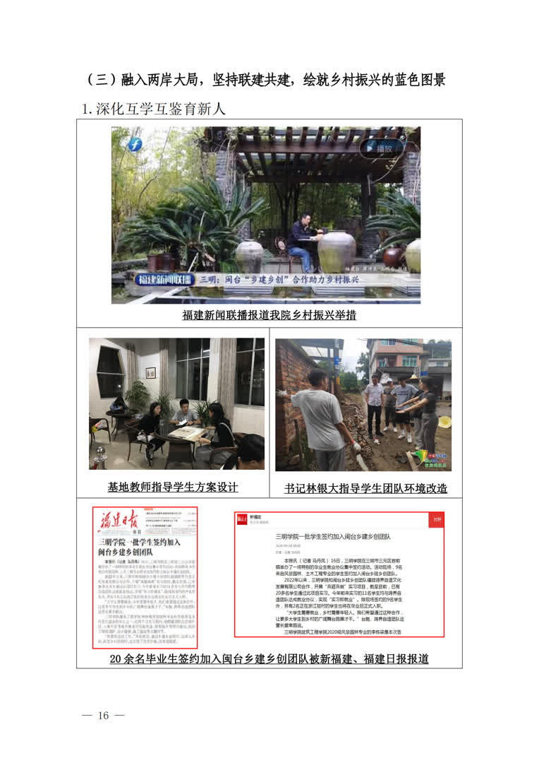 践行“地方性、应用型、开放式”办学定位,深化党建引领乡村振兴多维覆盖,以传承革命“红”,助力乡村“兴”为主题主线,融入海峡两岸乡村融合发展大局,用党建执笔“设计”,绘就红色深厚、绿色持久、蓝色鲜明的产学一体乡村振兴“图景”。