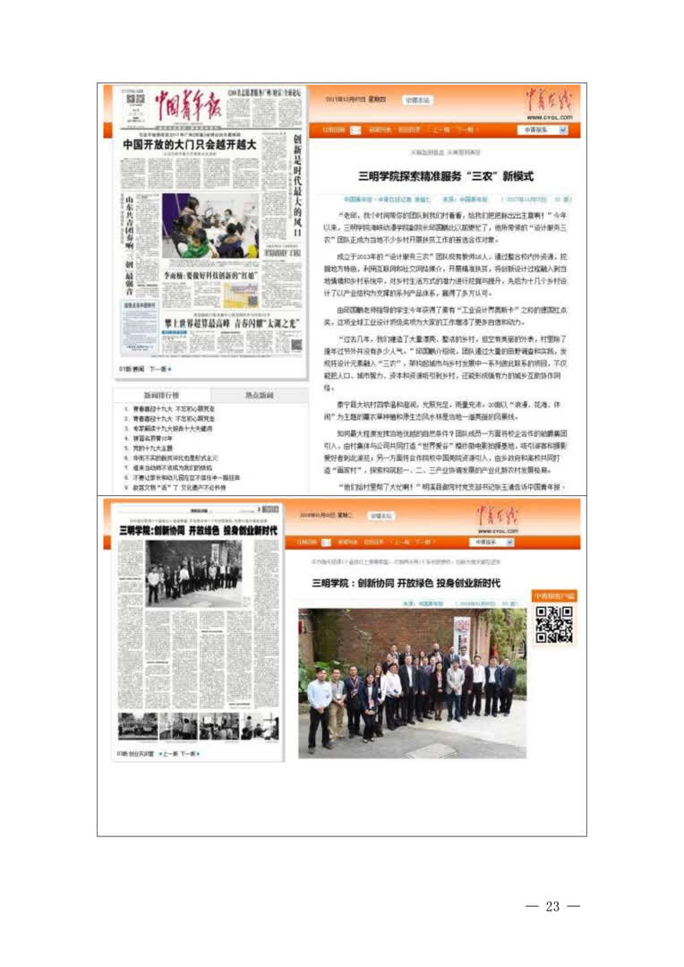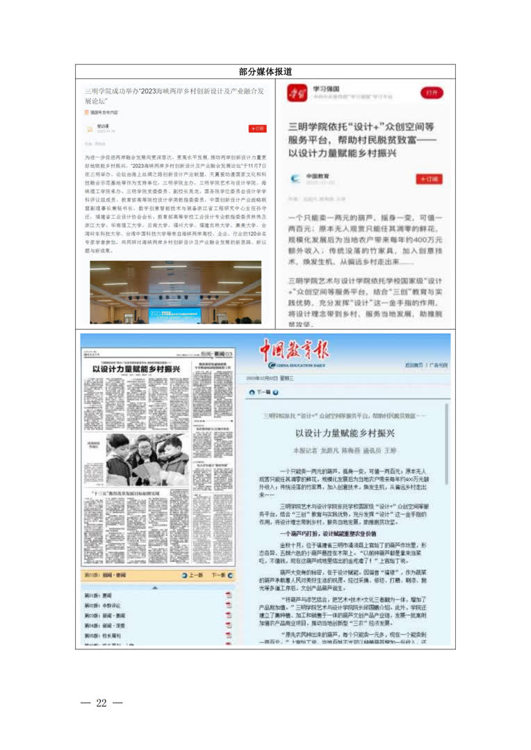 2.增进文化认同,设计服务有亮度。支部教师将本土特色资源引入课堂,促进对乡土文化、两岸同根同源的认同,也把沉浸式、参与式的教育理念运用到专业教学中,先后在三元、泰宁、明溪、清流等7县21村,开展了近千人次的服务设计,创立的“福禄万代”品牌,帮助当地村民实现家庭人均纯收入由2015年的3500元增至现在的1.6万元。支部的设计服务成果被地方政府采纳与实施,《人民日报》以《乡村振兴有新意 人民墙绘画新篇》为题对支部服务地方成效进行专题报道。《中国青年报》《中国教育报》《福建日报》等主流媒体报道支部赋能乡村振兴的做法和经验超20次。